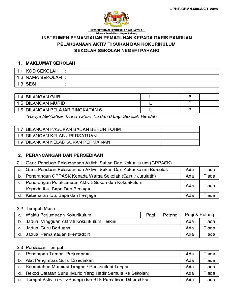 Borang Pemantauan Aktiviti Kokurikulum Pdf